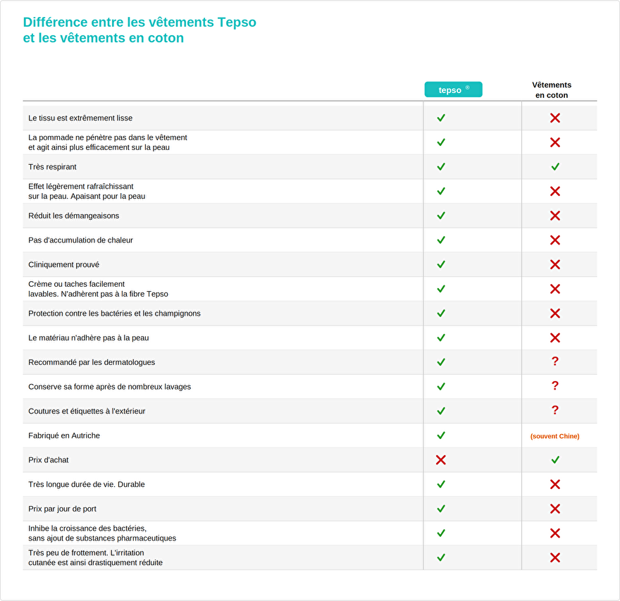 Pour le NOUVEAU site web de Tepso® avec encore plus de produits pour les vêtements contre l'eczéma et le psoriasis, cliquez ici.